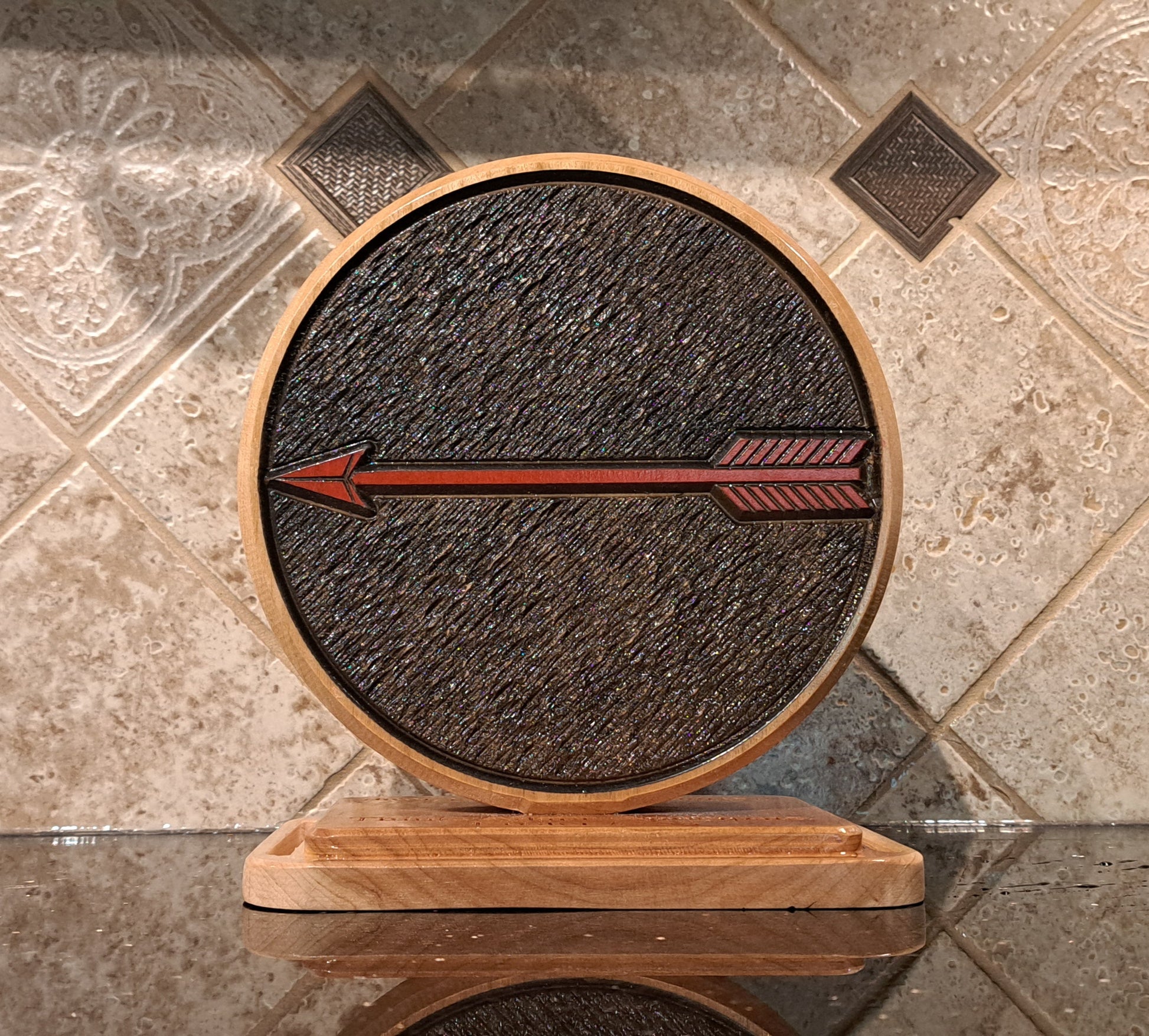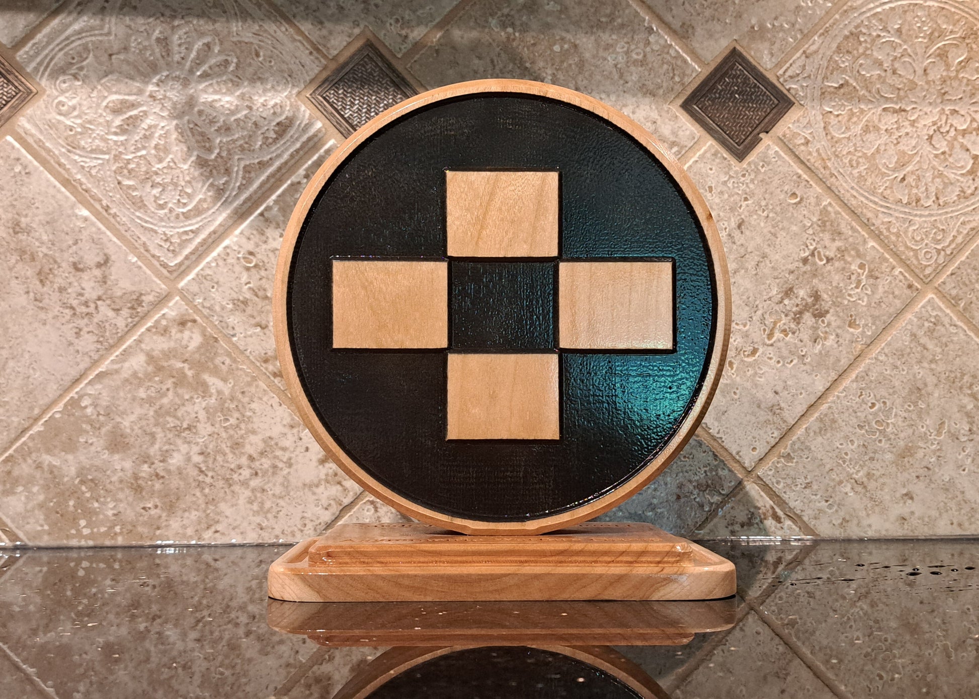 This stunning double-sided desk carving is crafted from premium cherry hardwood, showcasing the rich, natural beauty of the wood. Designed by a veteran for those that serve, it stands as a timeless tribute to the dedication and service to our country. Each piece is meticulously created with the aid of a CNC router, ensuring precision and excellence in every detail. Perfect for displaying on your desk, shelf or mantel. This carving is not just a decoration, but a patriotic symbol of honor and service.